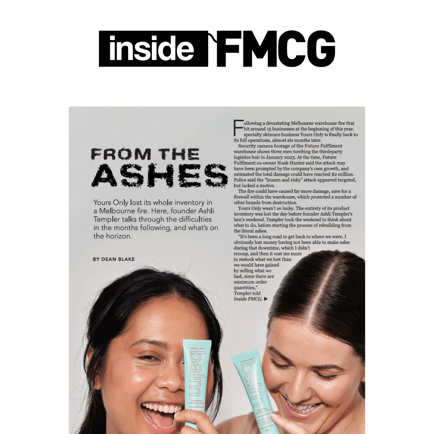 "Templer was preparing for her hen’s weekend when arsonists lit the Future Fulfilment warehouse alight on Thursday night, causing $2 million in structural damages and destroying around $70,000 of Yours Only’s specialty skincare products."